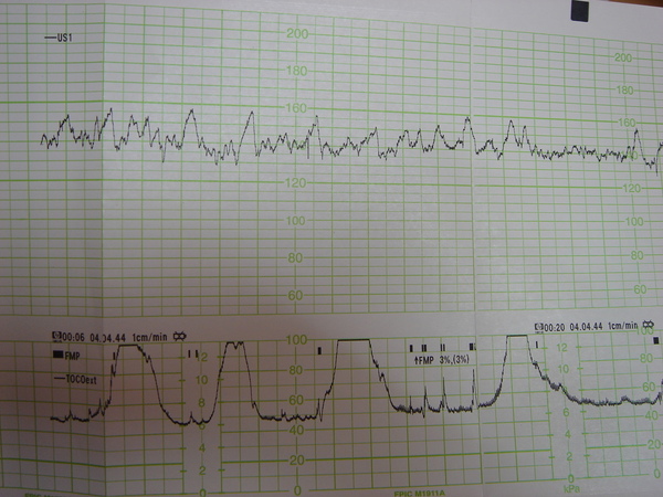 測胎心音及陣痛頻率,嗯,的確10分鐘有3次陣痛,強度也強…