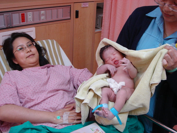 終於,已經全開了!護士開始教我用力及「幫忙挖」,真的…接下來的過程,howard形容是「精彩」,我的感覺是「無奈、任人擺佈」,護士及醫生每隔一段時間就進來幫忙,後來乾脆兩位護士進來,一個幫忙挖、一個幫忙壓肚子把寶寶屁股壓下去…我則是痛到很想殺人,但只能專心的憋氣、用力;憋氣、用力;憋氣、用力…